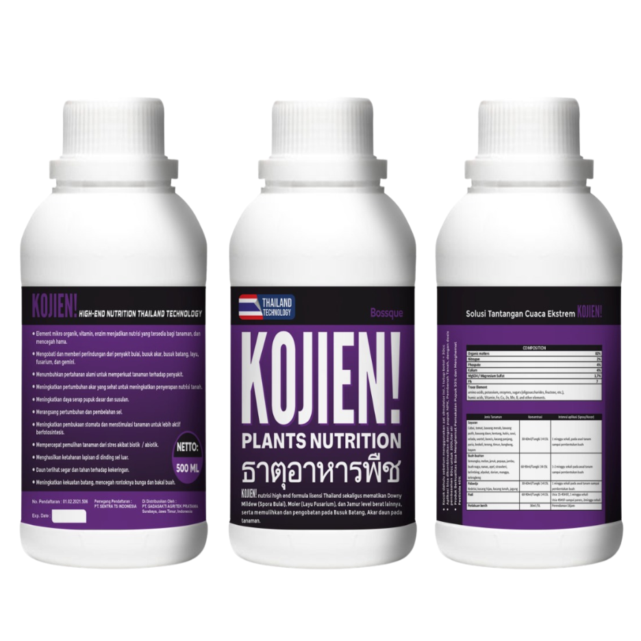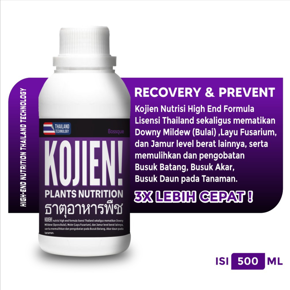 • Benefit : Kojien nutrition high end Thai license formula can kill downy mildew, fusarium wilt, and other heavy level fungi, as well as restore and treat stem rot, root rot, leaf rot in plants.